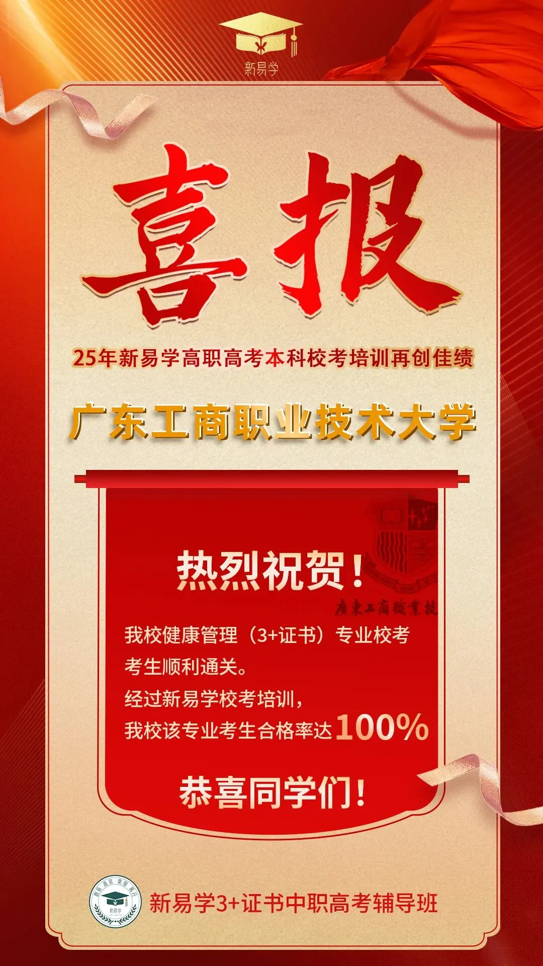 新易学健康管理(3+证书)专业校考考生顺利通关。经过新易学校考培训,新易学该专业考生合格率达100%。