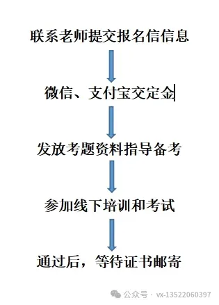 报名——备考——培训——考试——拿证