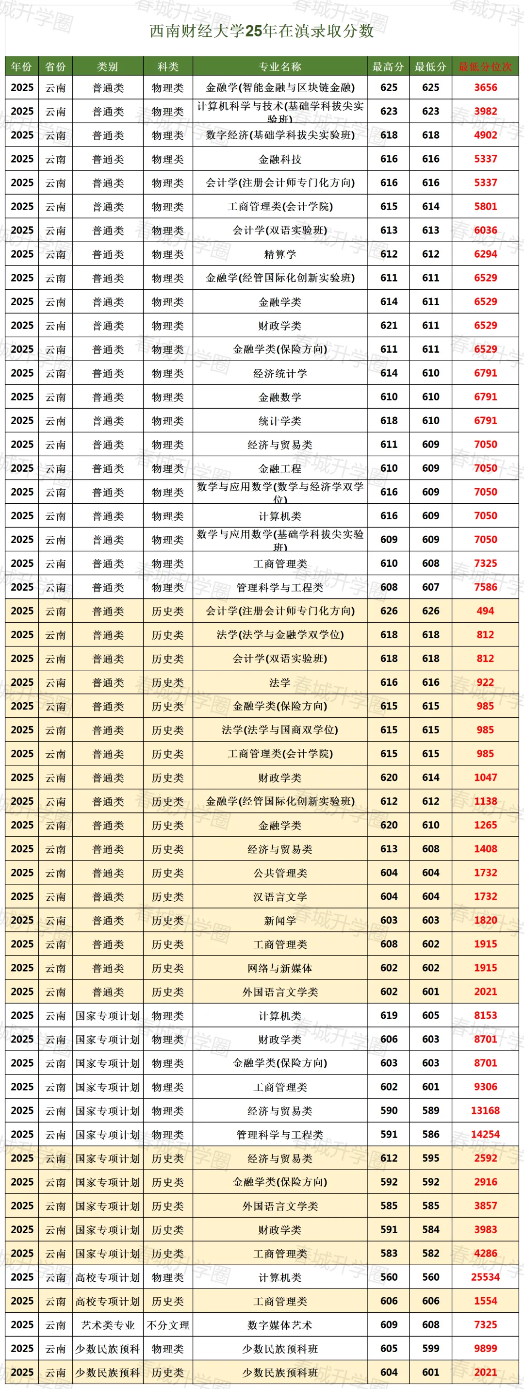 四川高校 | 西南财经大学25年录取分数线(云南)