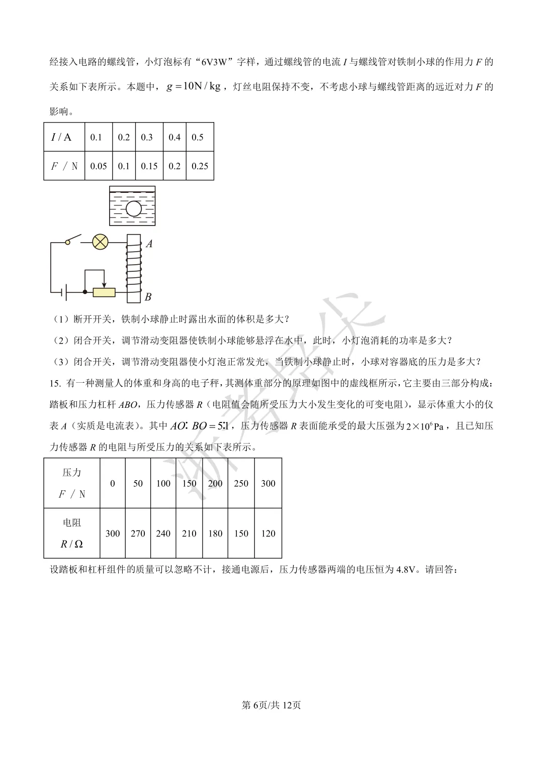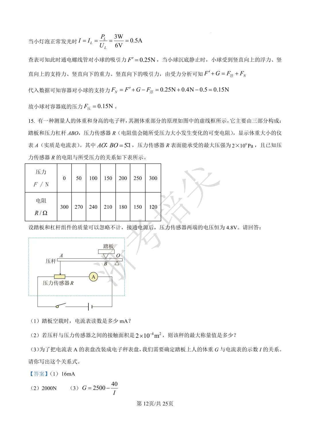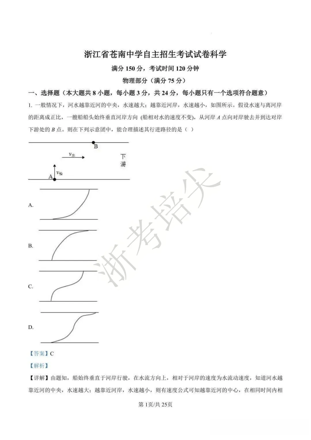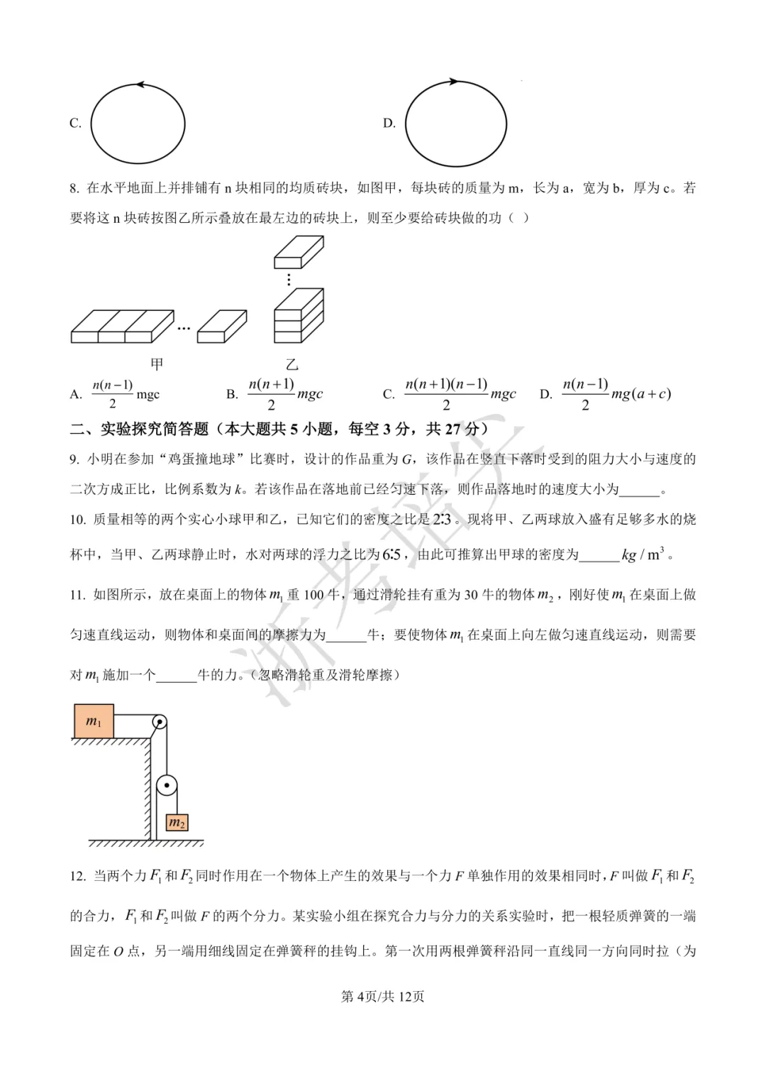 【最新】2025年杭二签约选拔物理试卷