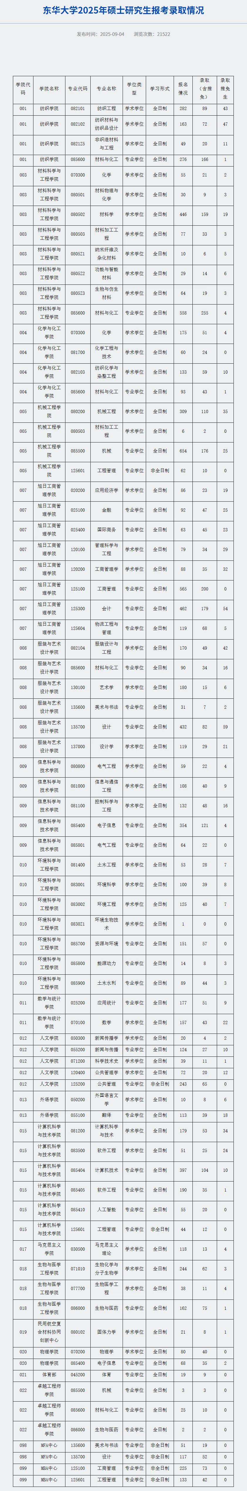 东华大学报录情况