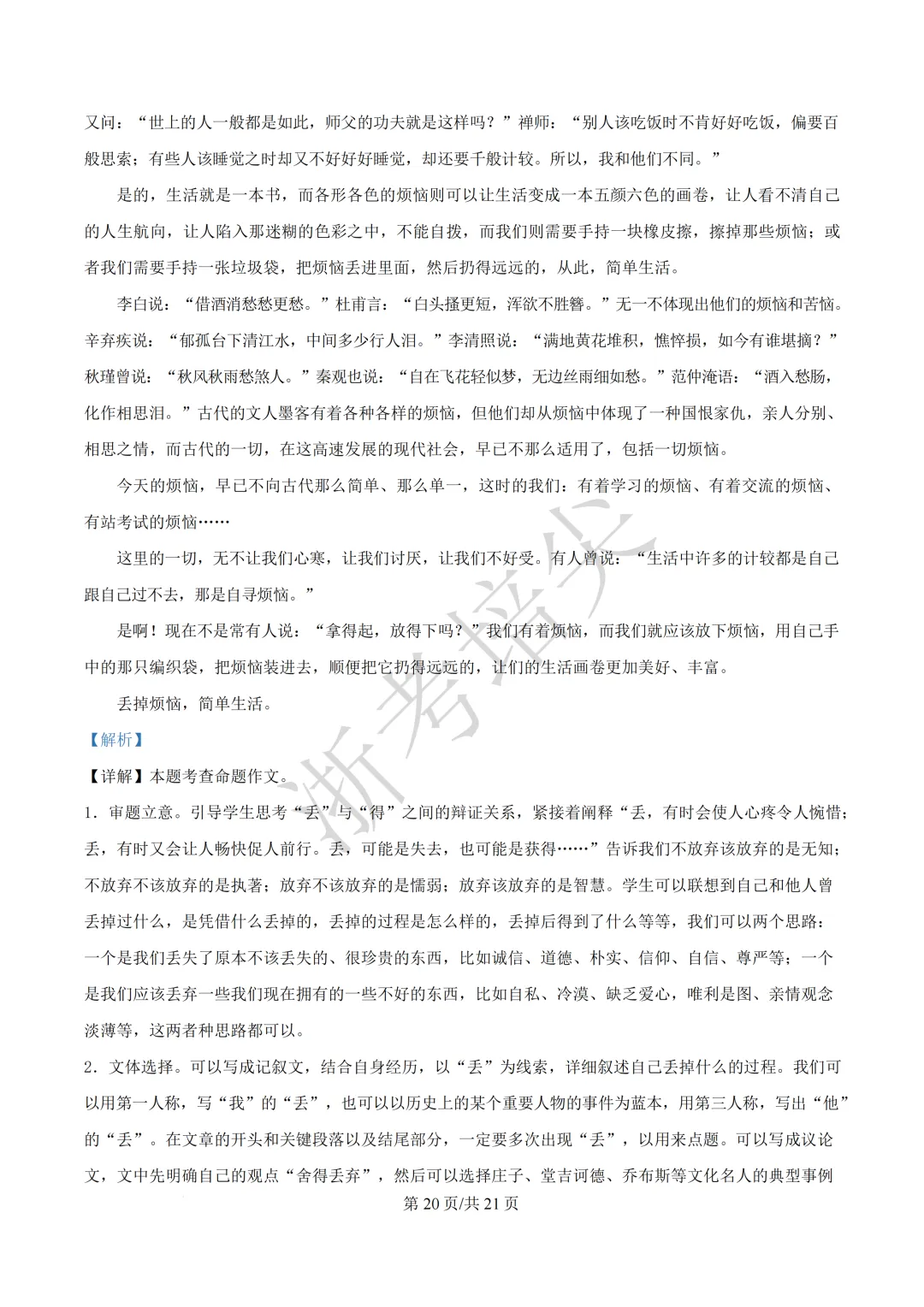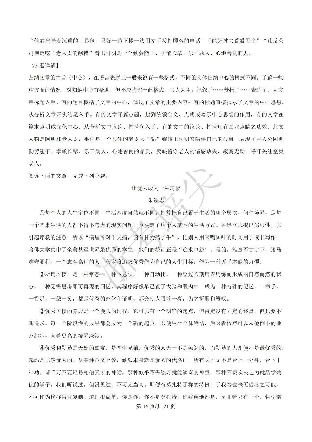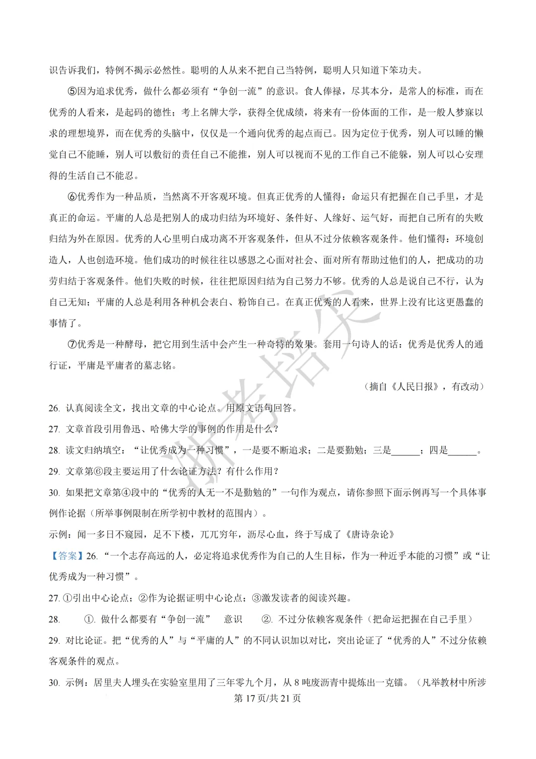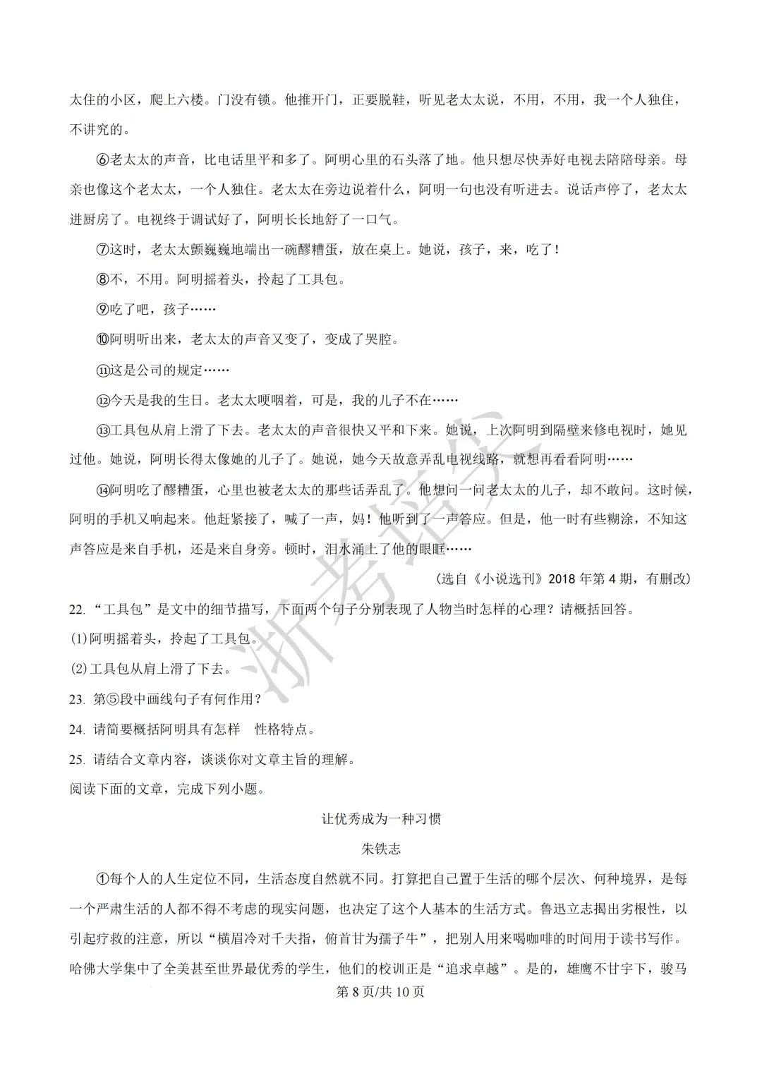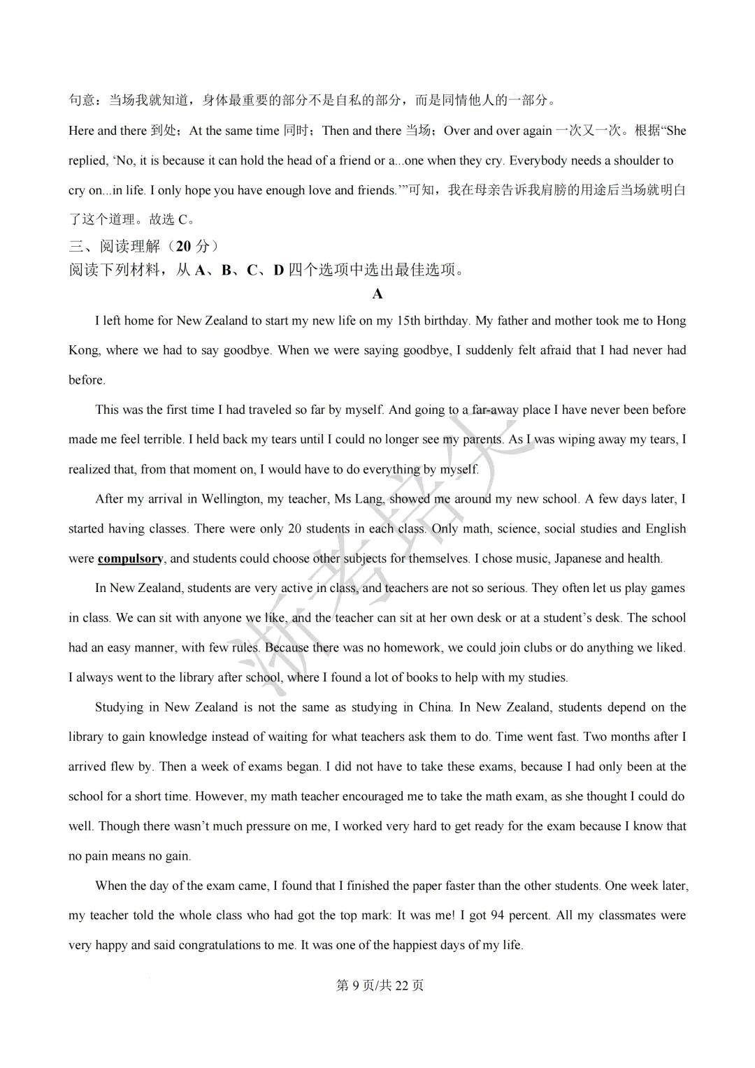 浙江省慈溪中学提前招生考试(英语·语文)试题