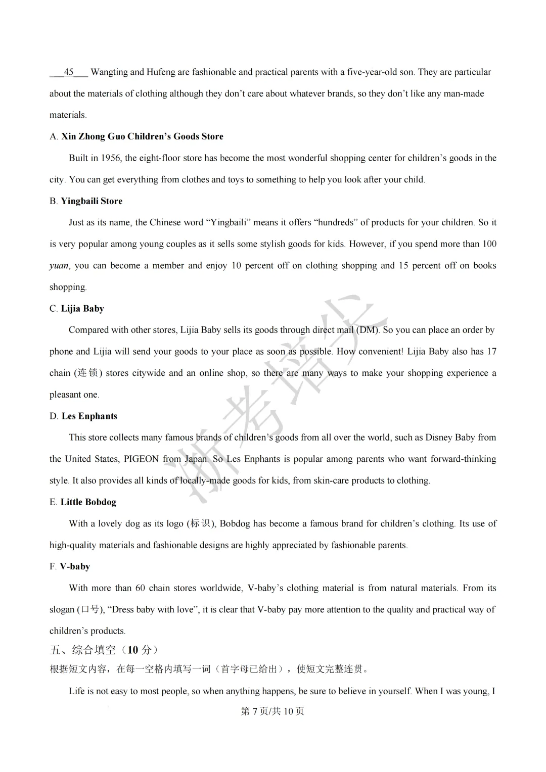 左右滑动查看全卷