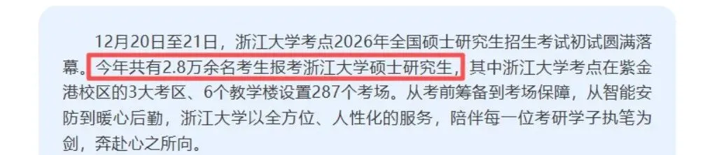 浙江工商大学:2026年全国硕士研究生招生考试共有1万余名学子报考浙商大。