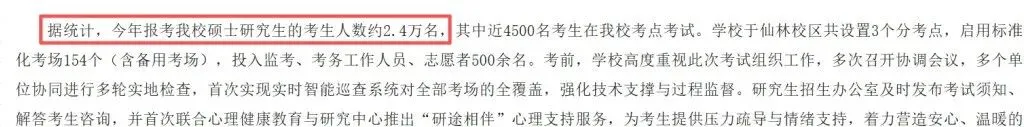 2026年全国硕士研究生招生考试报名人数为343万,报名人数较去年下降45万,但是今年还是有些院校报考激烈,一起来和小新看看今年哪些院校相对比较卷?2026年共有2.8万余名考生报考浙江大学硕士研究生。据统计,今年报考南京大学的硕士研究生考生人数约2.4万名。2026年共有2万余名考生报考清华大学,近三年报考人数相对稳定。今年,共有2万余名考生报考中国人民大学硕士研究生。今年共有22000余名考生报考北京师范大学硕士研究生。深圳大学2026年硕士研究生报考人数为21394人。同济大学:2026年共有1.7万余名考生报考同济大学。