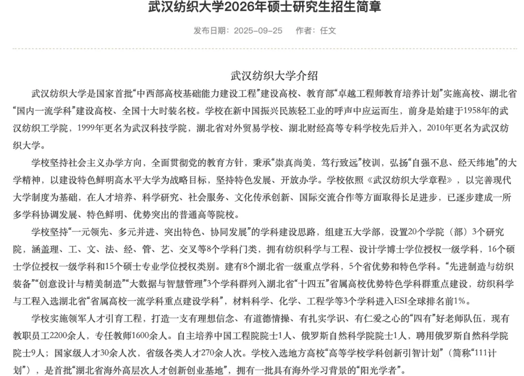 >广播电视考研 | 2026年武汉纺织大学广播电视硕士招生简章、专业目录