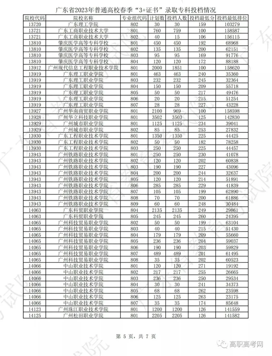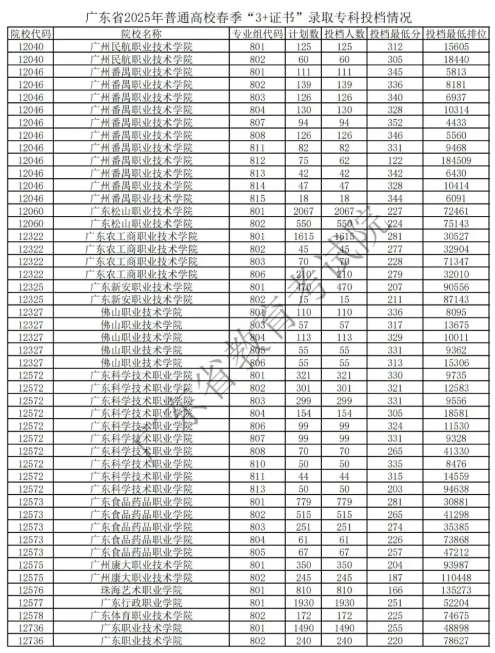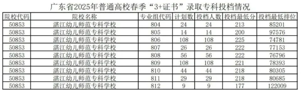 经研究决定,广东省2025年普通高校春季高考(普通高等学校招收中等职业学校毕业生统一考试、高职院校依据普通高中学业水平考试成绩招生录取)招生录取最低分数线如下: