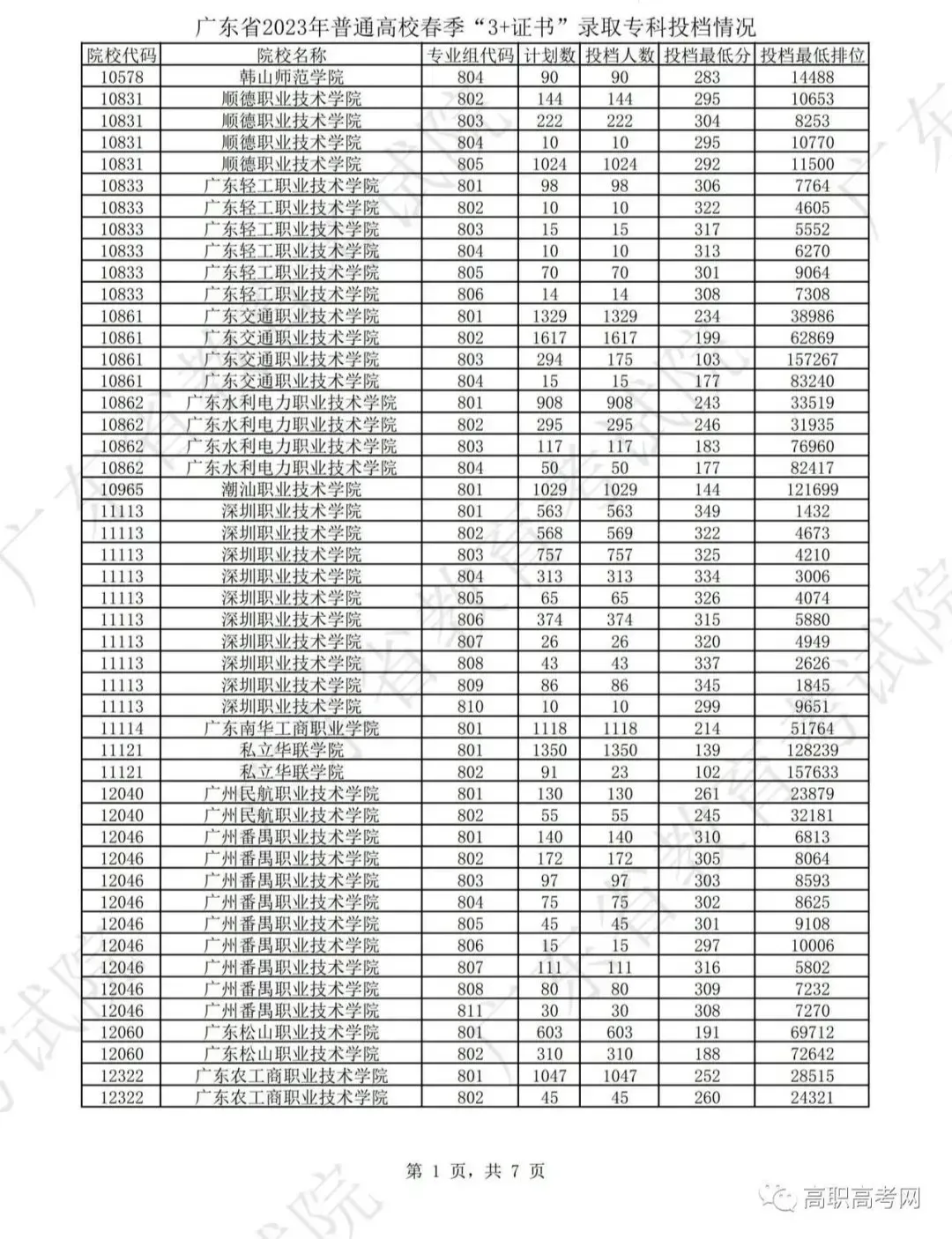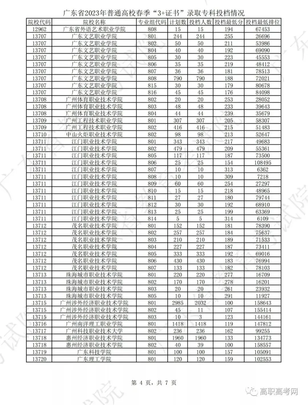 2023年3+证书投档情况