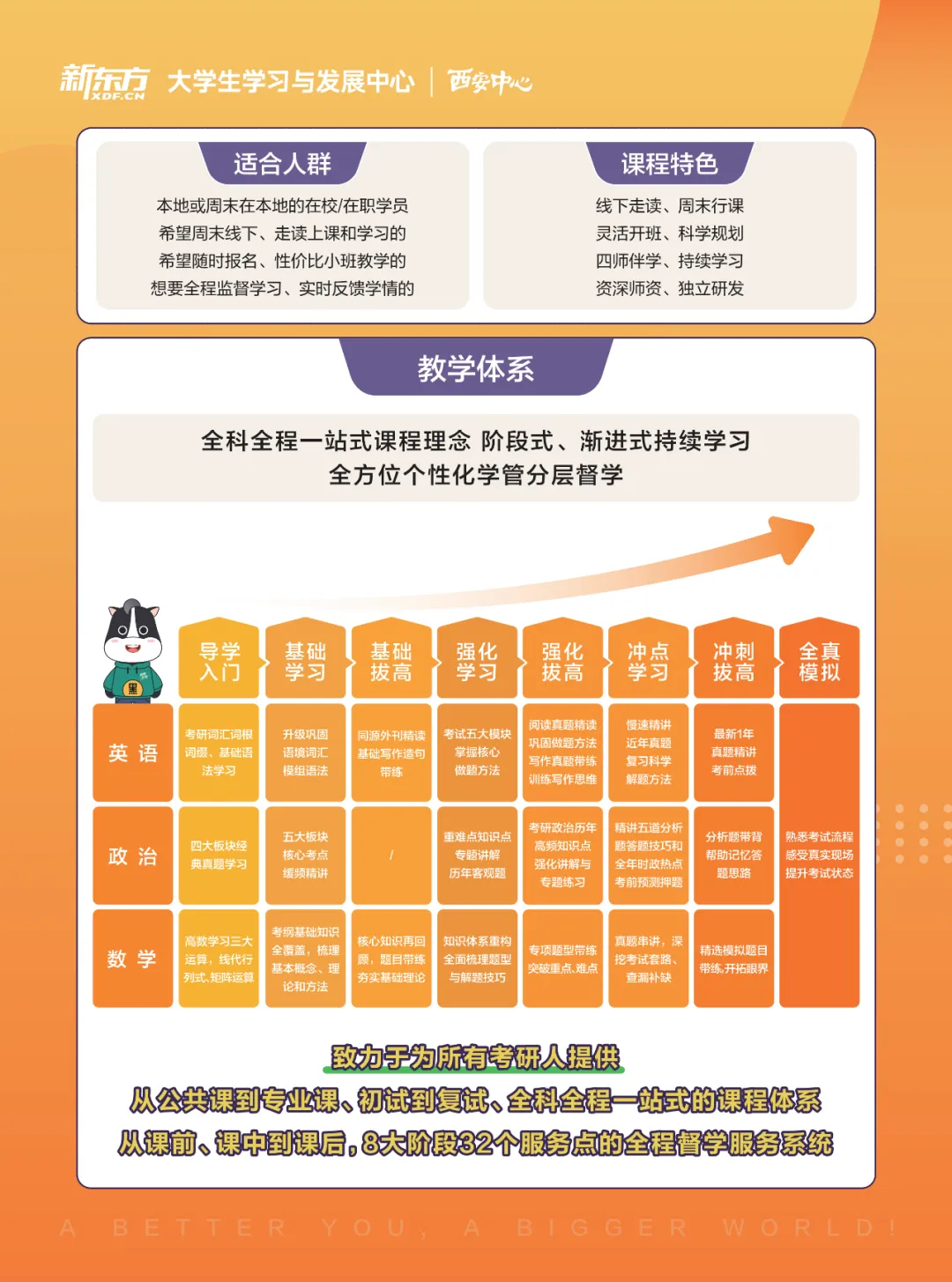 新东方基于对大学生群体的深入调研和强大的教学研发能力,全新打造27考研课程,给同学提供全科、全场景、全程(包含英政数专业课等)的课程辅导。