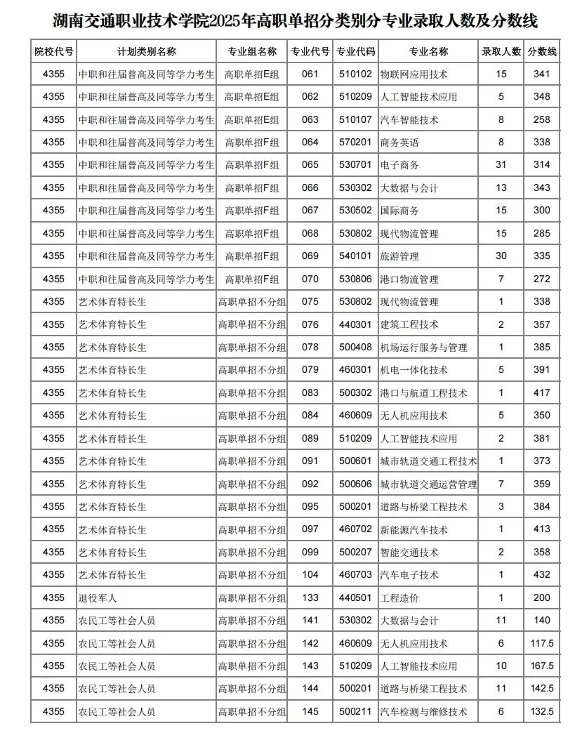中职考生和往届普通高中考生及同等学力考生(第二类考生) | 355 | |