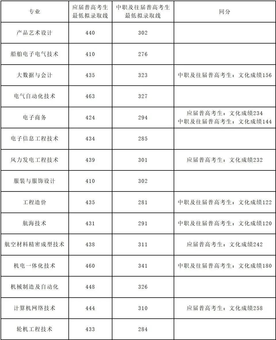 热能动力工程技术 | 应届普通高中毕业考生(第一类考生) | 421.5 | |