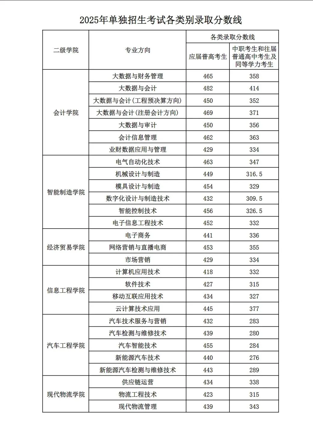供用电技术 | 应届普通高中毕业考生(第一类考生) | 448.5 | |