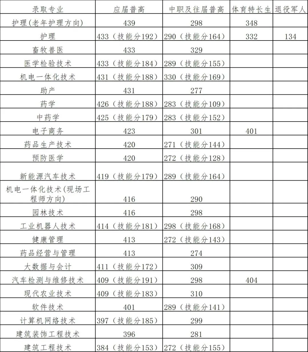发电运行技术 | 应届普通高中毕业考生(第一类考生) | 438 | 数学96 |