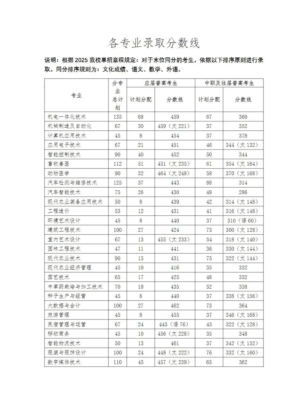 报考专业 | 考生类别 | 录取分数线 | 同分情况 |