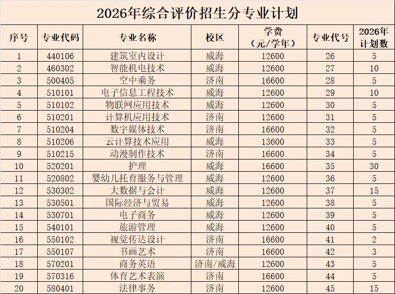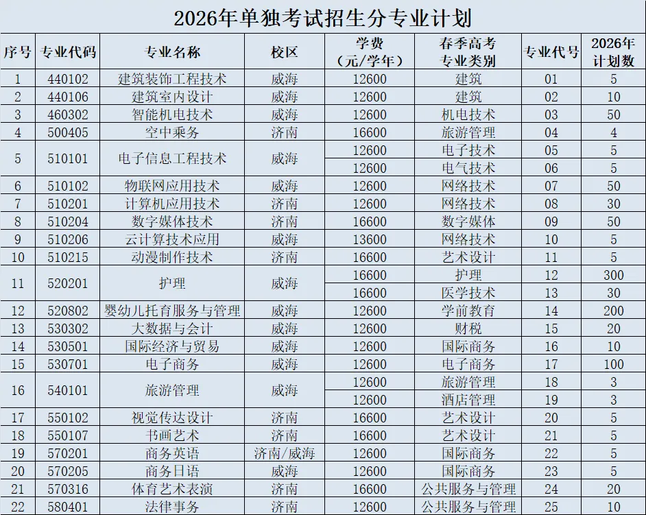 山东外事职业大学丨2026年单独考试招生和综合评价招生