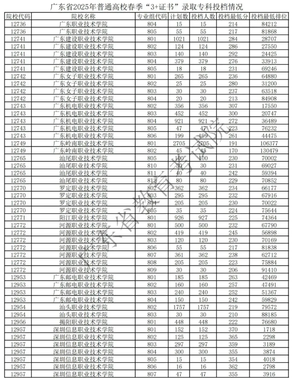 经研究决定,广东省2025年普通高校春季高考(普通高等学校招收中等职业学校毕业生统一考试、高职院校依据普通高中学业水平考试成绩招生录取)招生录取最低分数线如下:一、普通高等学校招收中等职业学校毕业生统一考试