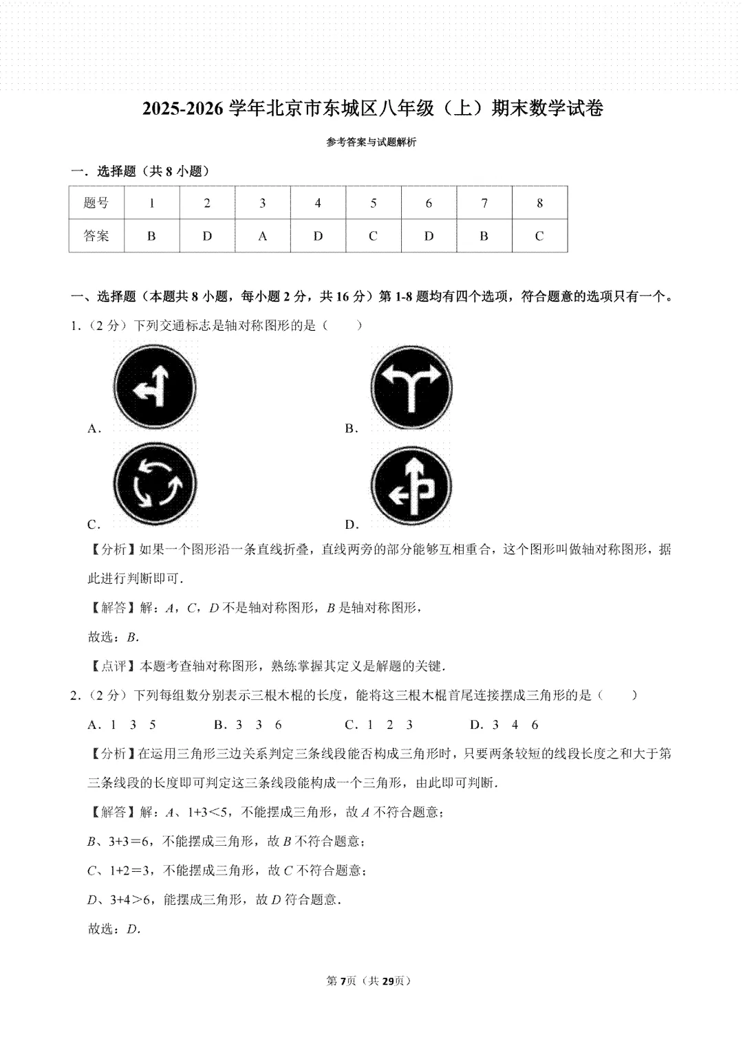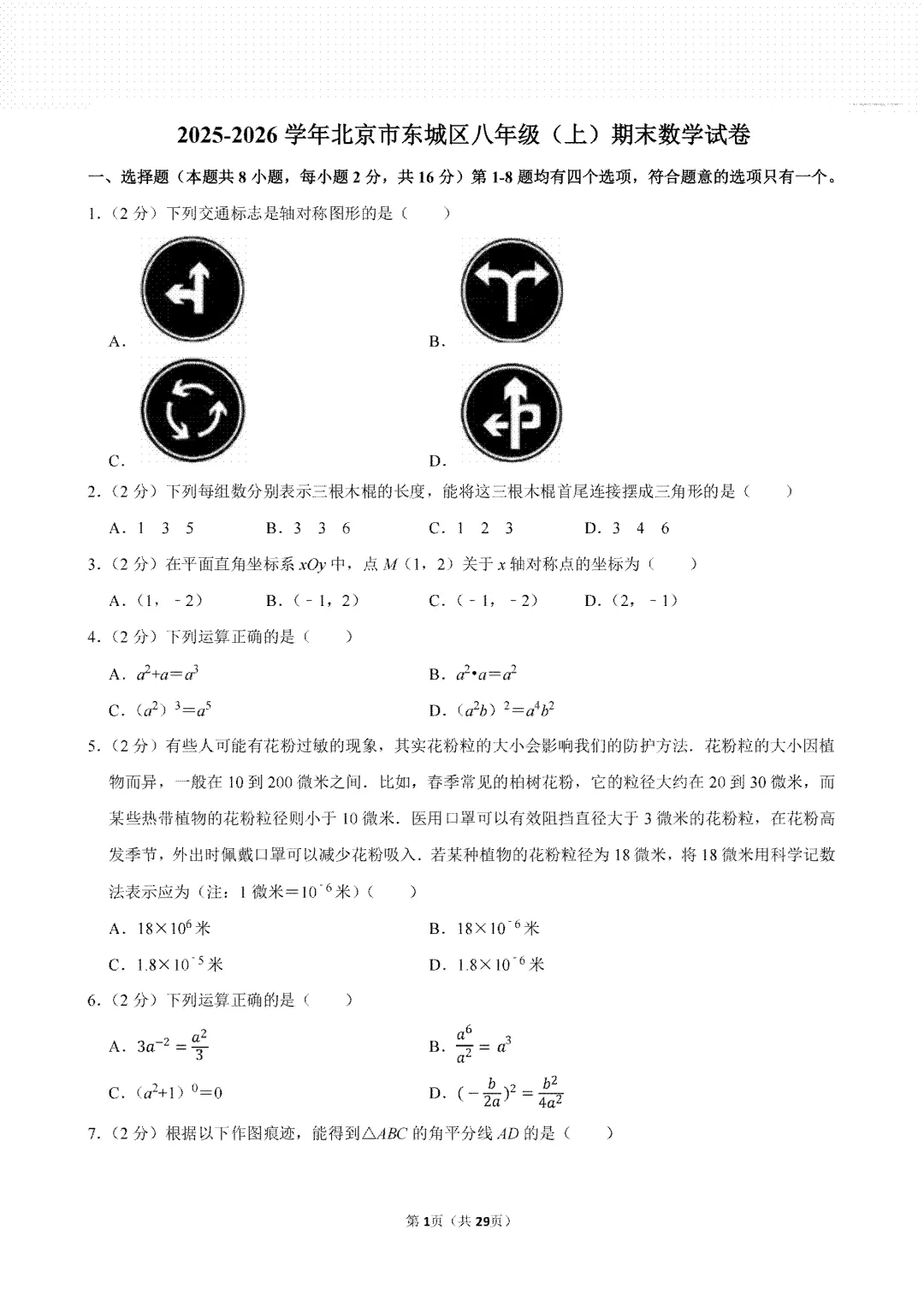 >东城八年级数学25-26学年上北京期末考试试卷+答案