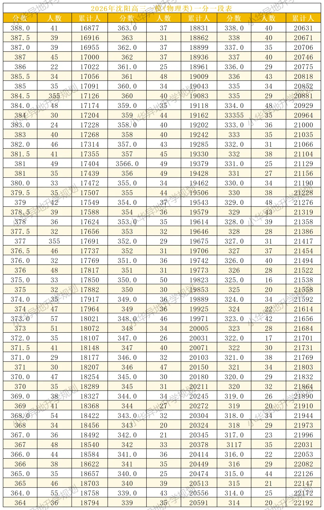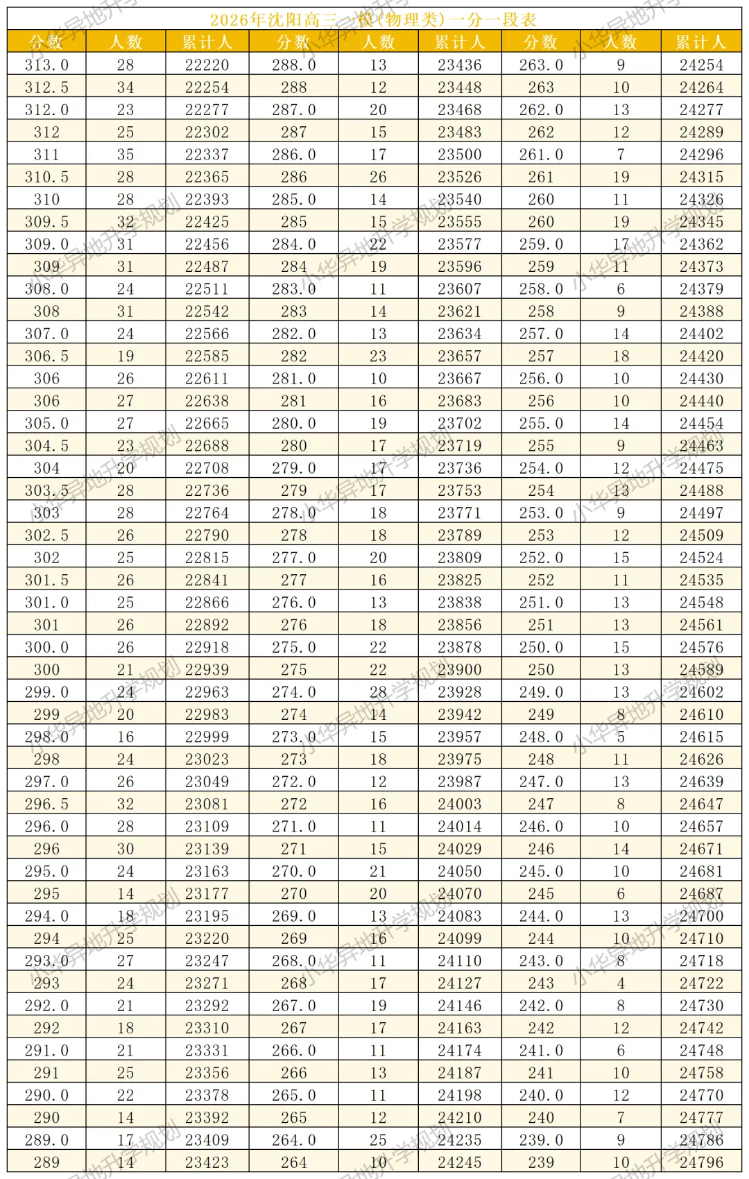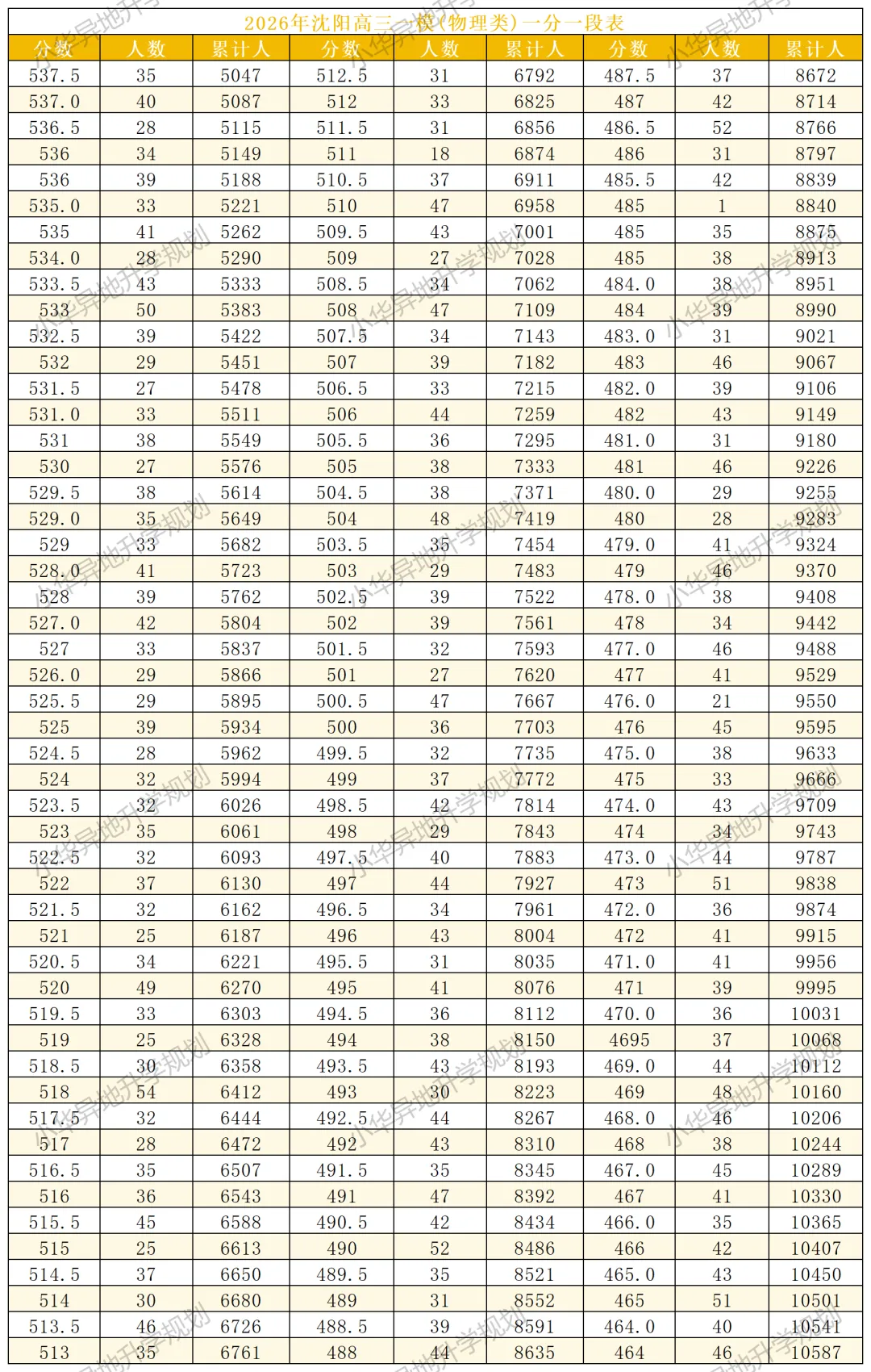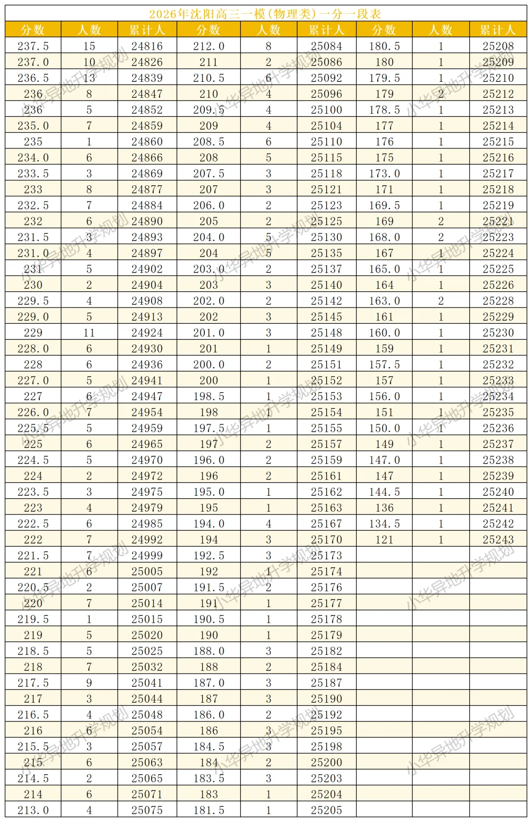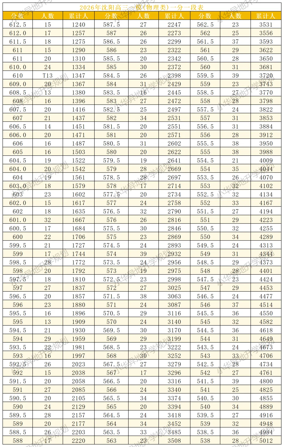>异地升学之2026年辽宁沈阳高三一模物理组一分一段排名出炉!
