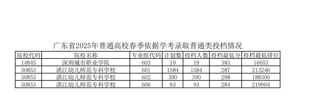 2025年春季高考(学考录取)第一次投档情况