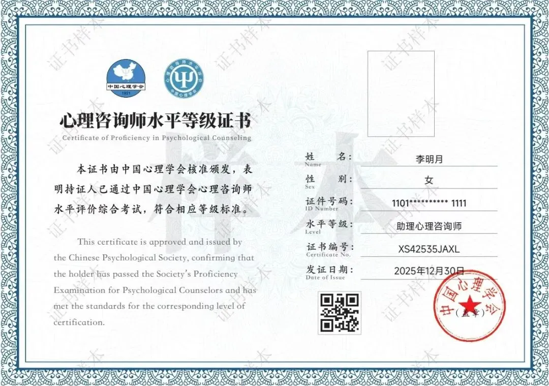 中国心理学会向通过心理咨询师水平评价综合考试的考生核发相应级别的心理咨询师水平等级证书。证书统一编号,统一查询,可供用人机构和心理咨询服务对象参考。