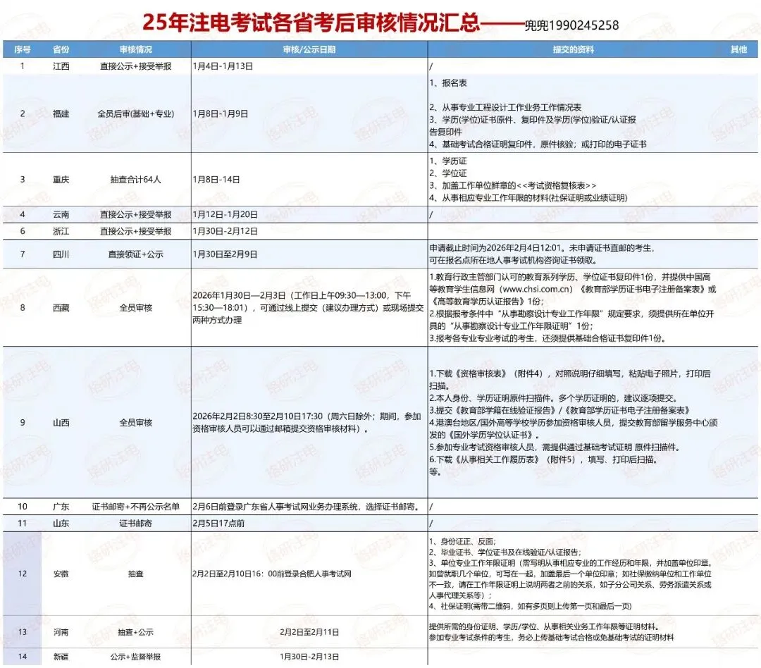 截至现在,江西、福建、重庆、云南、江苏、浙江、四川、西藏、山西、安徽、河南、新疆等多地发布了25年度全国勘察设计注册工程师执业资格考试合格人员公示/考后核查公告。其中,广东、山东、四川3省直接开始申请纸质证书直邮。江西:公告链接:
