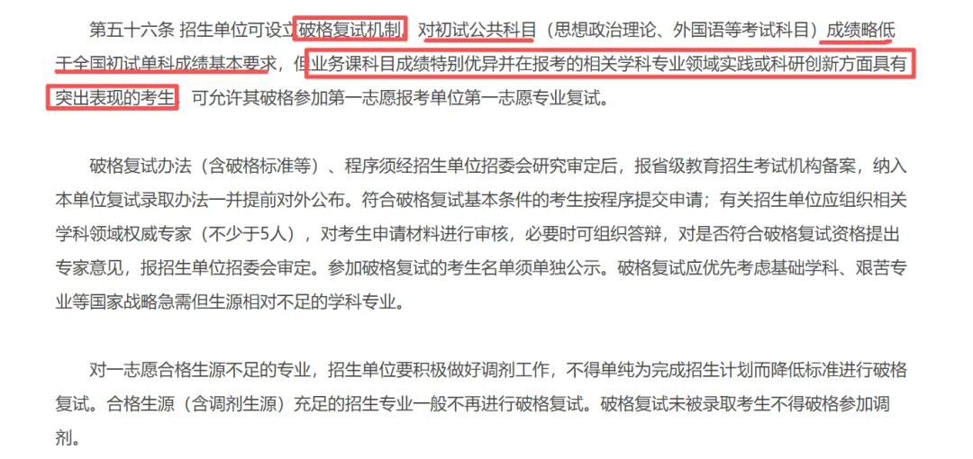 相较25年,26年新的规定对破格复试的条件进行了严格限制。只有在业务课科目成绩特别优异并在报考的相关学科专业领域实践或科研创新方面具有突出表现的特定情况下,考生才能申请破格复试,这一措施有效维护了复试的严肃性和公正性。