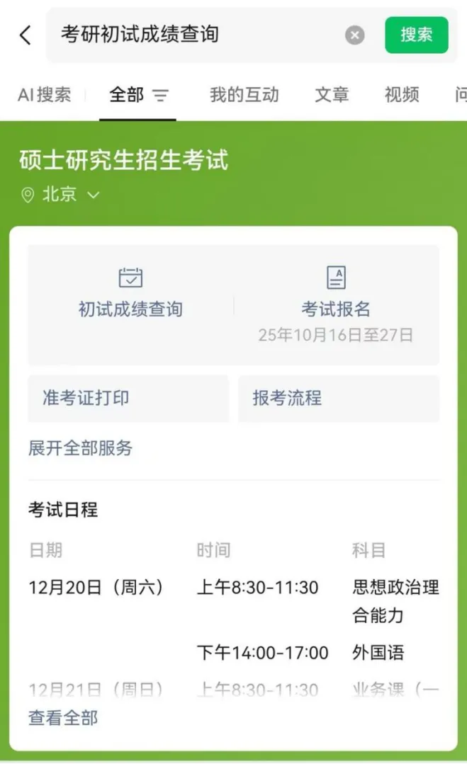 微信搜索“考研初试成绩查询”,点击“初试成绩查询”,根据页面提示就能进行初试成绩查询。