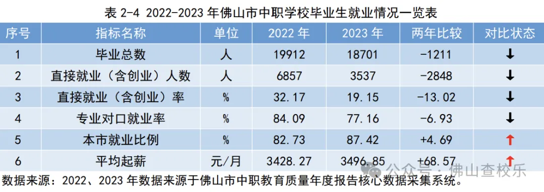 虽然直接就业率有所下降,但毕业生薪资有所增长,且大多数选择留在佛山就业,说明本地经济对中职毕业生的需求依然强劲。