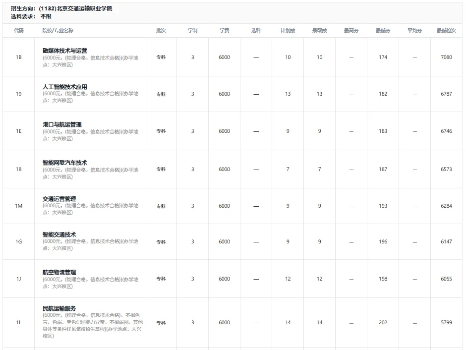 北京交通运输职业学院1J航空物流管理198