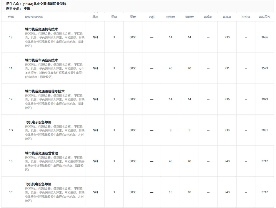 北京交通运输职业学院1C飞机机电设备维修240