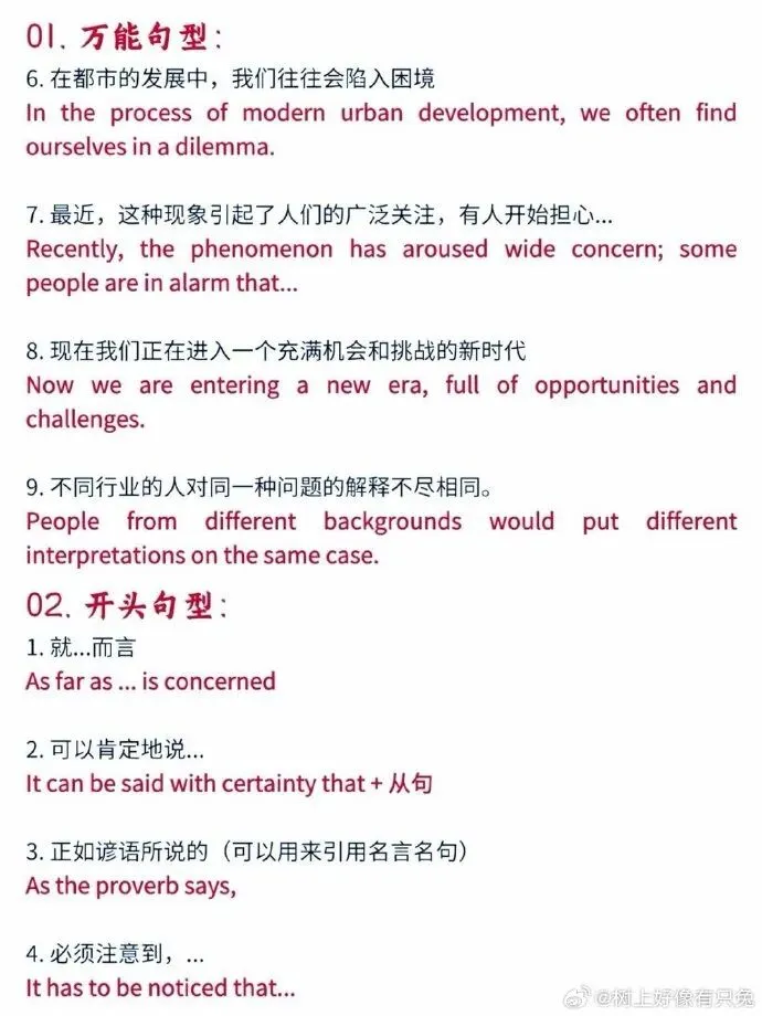 >考研英语-作文万能句型
