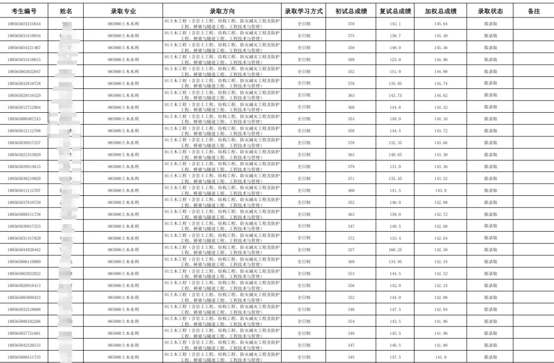 拟录取名单