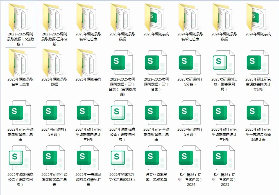 2023-2025年完整的考研调剂录取名单(含学生分数、一志愿学校)及分数段统计,一志愿和调剂录取的最高分、最低分,新增专业与调剂去向分析。maybe市面上独一份!这些数据,2026届考生调剂和2027届考生择校都可以参考。