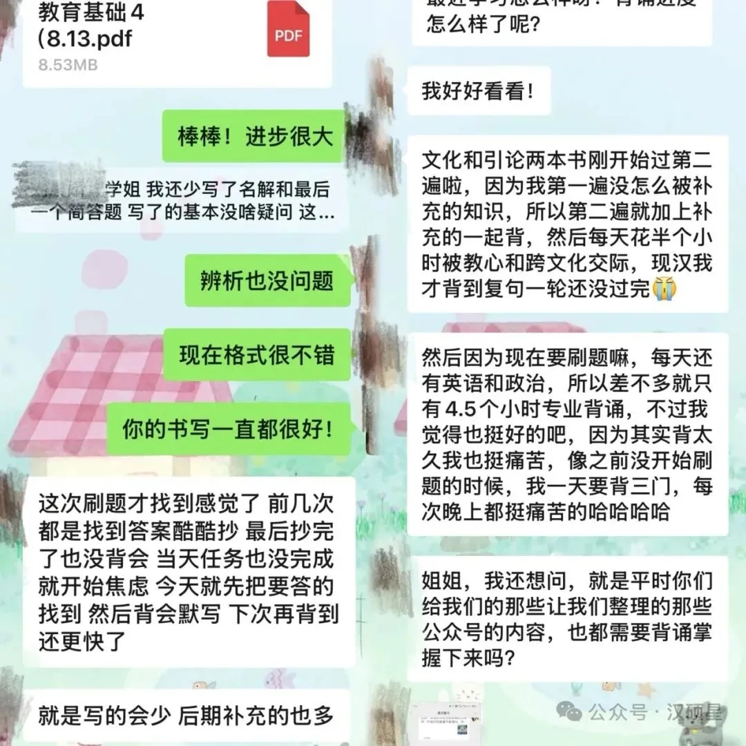 1.我们会针对具体掌握情况,进行抽背,全程陪伴考研。(可一周一抽背、半月一抽背、一月一抽背)抽背的频率根据学妹自身学习计划进行。