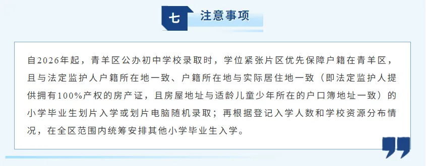 2026年,青羊区小升初学位紧张片区,优先保障户籍在青羊区,且‘双一致’学生的学位。