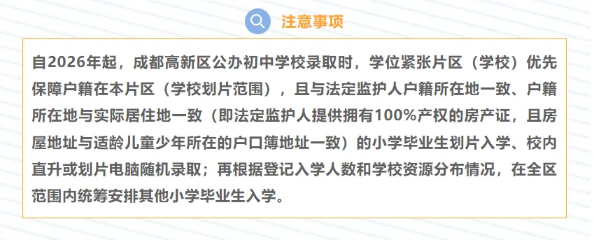 2026年,高新区小升初学位紧张片区优先保障户籍在本片区且‘双一致’学生的学位。