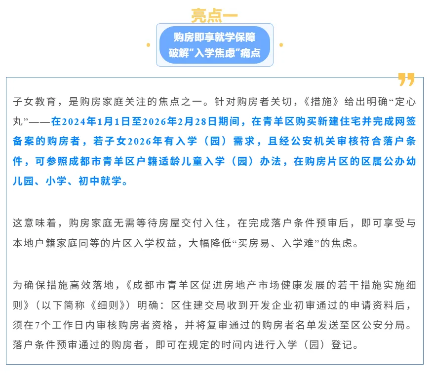 2026年,在青羊区购买新房,完成网签备案和落户条件预审后,就可以登记读幼儿园、小学或者初中。