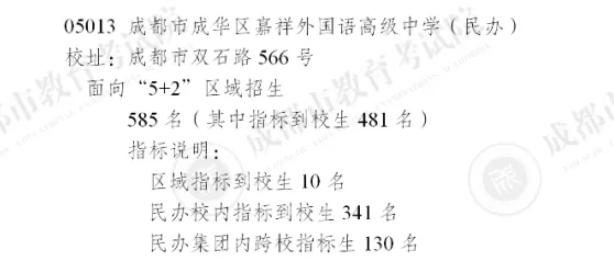 2025年高中招生计划也单独列了集团内跨校指标生,嘉祥锦江高中45名、嘉祥成华130名...