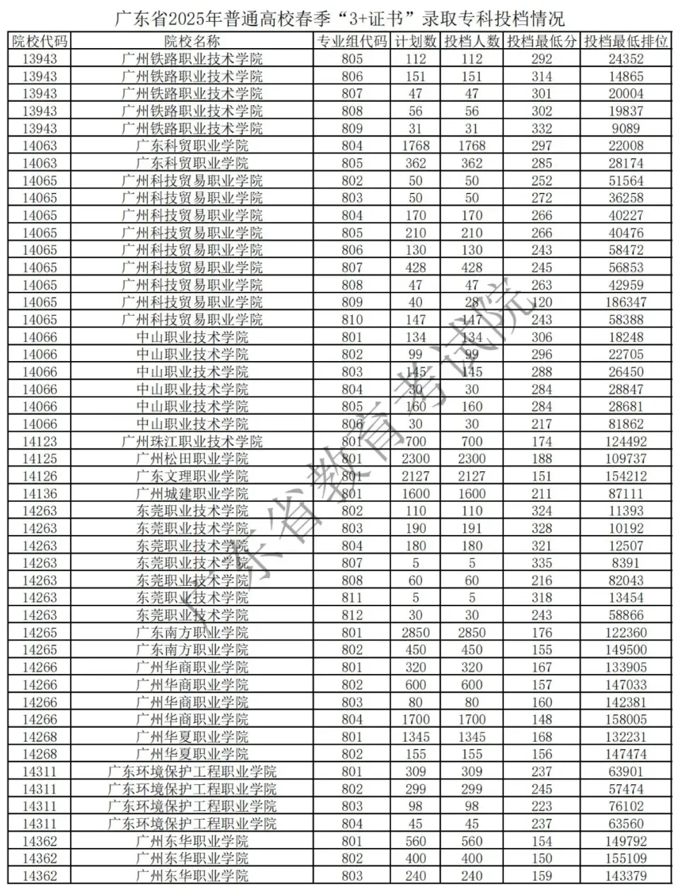 广东省2026年普通高等学校招收中等职业学校毕业生统一考试(即“3+证书”考试)成绩