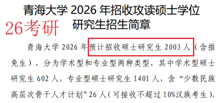 2026年预计招收硕士研究生2003人,其中学术型硕士研究生602人,专业型硕士研究生1401人。