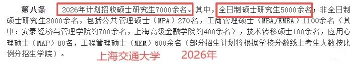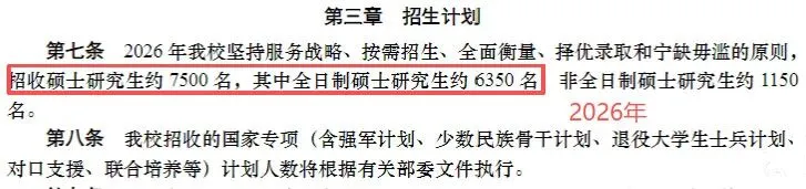 2026年学校计划招收硕士研究生7000余名,其中全日制硕士研究生5000余名。