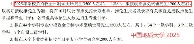 2025年学校计划招收全日制硕士3500人左右,其中拟招收推免约1200人。从以上数据看出,今年该校扩招了约150个全日制统招硕士名额。