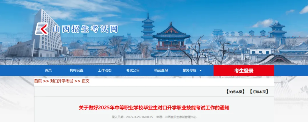 根据《山西省教育厅关于做好2025年中等职业学校毕业生对口升学工作的通知》(晋教职成〔2024〕10号)精神,为做好2025年对口升学职业技能考试工作,确保考试安全顺利进行,现将有关事宜通知如下,请遵照执行。