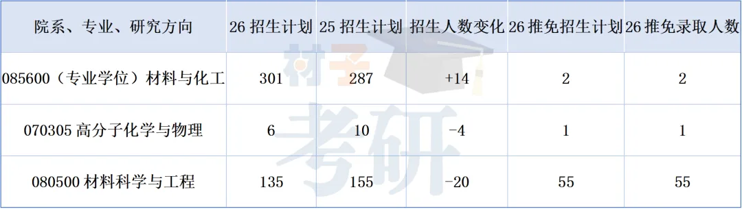 近年来专业学位硕士招生体量不断增加,这一趋势符合目前的招生趋势。具体情况分析如下,专业学位材料与化工26年招生计划相比于25年招生计划增加了14人;相比于专业学位招生人数增加的趋势,学术学位的招生人数有所下降,且学术学位的保研人数较多,其中高分子化学与物理招生人数减少了4人,推免生1人,近年来该方向的人数一直处于下降的趋势,材料科学与工程招生人数减少了20人,推免生人数55人。一般情况下,最终的招生人数会略高于招生计划。25年材料与化工和材料科学与工程的新能源方向复试竞争激烈,有一些初试成绩较好的同学最终也惨遭淘汰无缘郑州大学。因此大家要足够重视复试,取得一个好的结果,圆梦郑大。