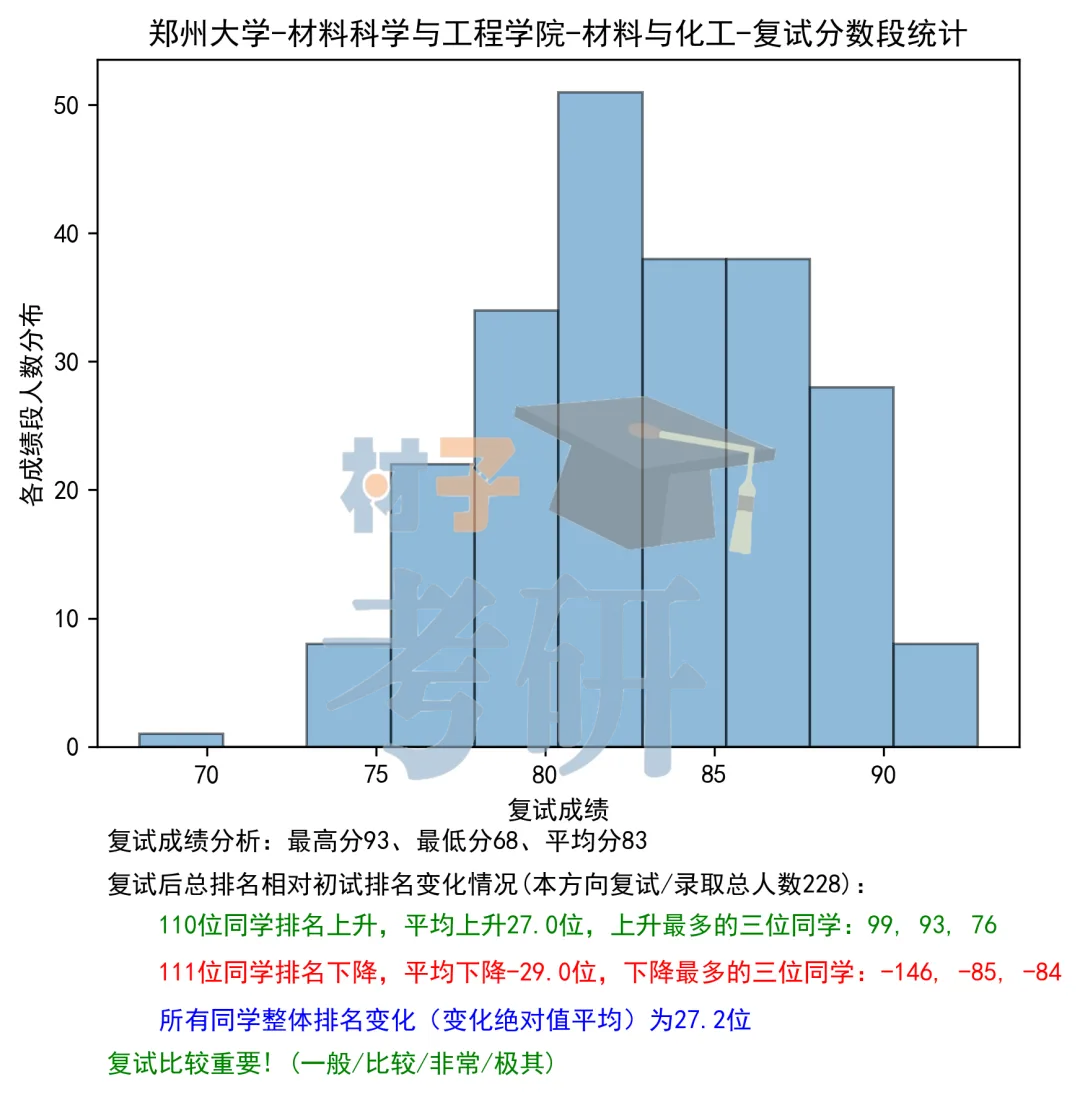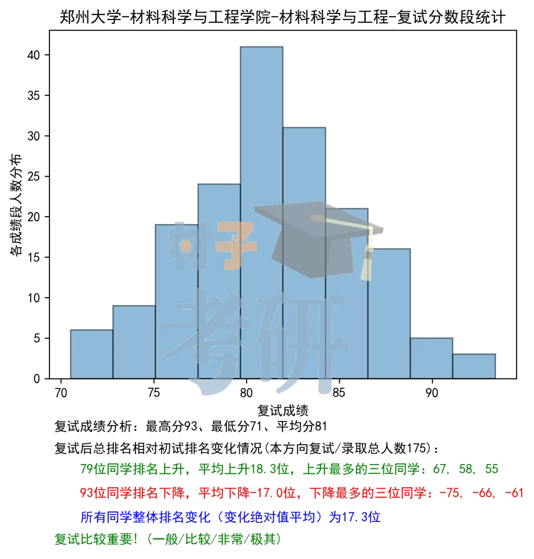 在3月中下旬郑大会公布复试分数线,这个分数线就是决定你到底能不能进入复试了。院线是在校线的基础上划的线,也就是说,一般来讲,分数都会高于校线,我们这个分数线就不是在研招网查询了,而是在郑州大学材料科学与工程学院里面的通知通告栏里查询,里面会给出参加复试的基本条件以及需要准备的材料,同时会贴出复试名单,我们就可以看到进复试的每个人的成绩,并看到自己的排名。之后到复试开始之前的这段时间里,我们就会接到郑大材料院老师的信息,会让你加一下复试的微信群,确认一些关于复试的事情,以及一些复试分组之类的安排。