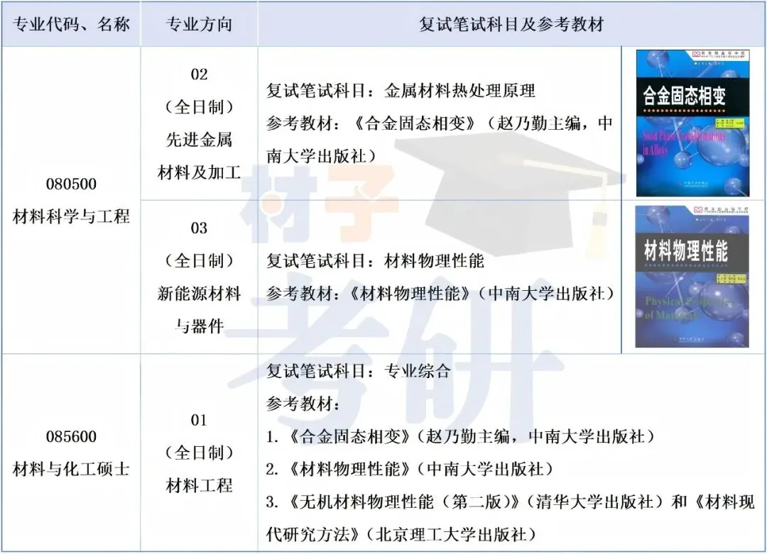 材料与化工03方向参考教材:《无机材料物理性能(第二版)》(清华大学出版社)和《材料现代研究方法》(北京理工大学出版社)