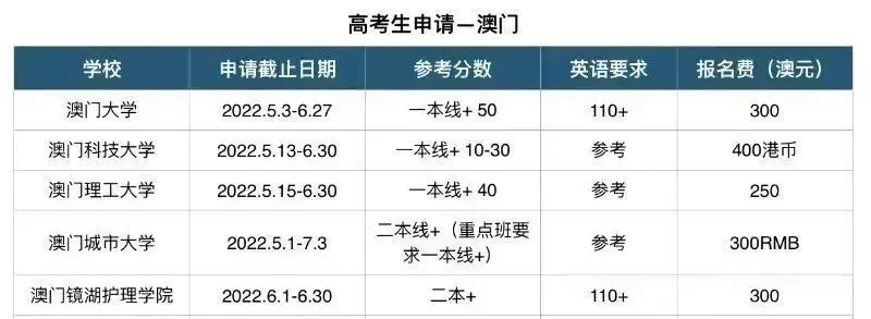 以下为港澳地区院校申请参考分数、截止时间、学费及专业介绍,2023届学子可供参考。