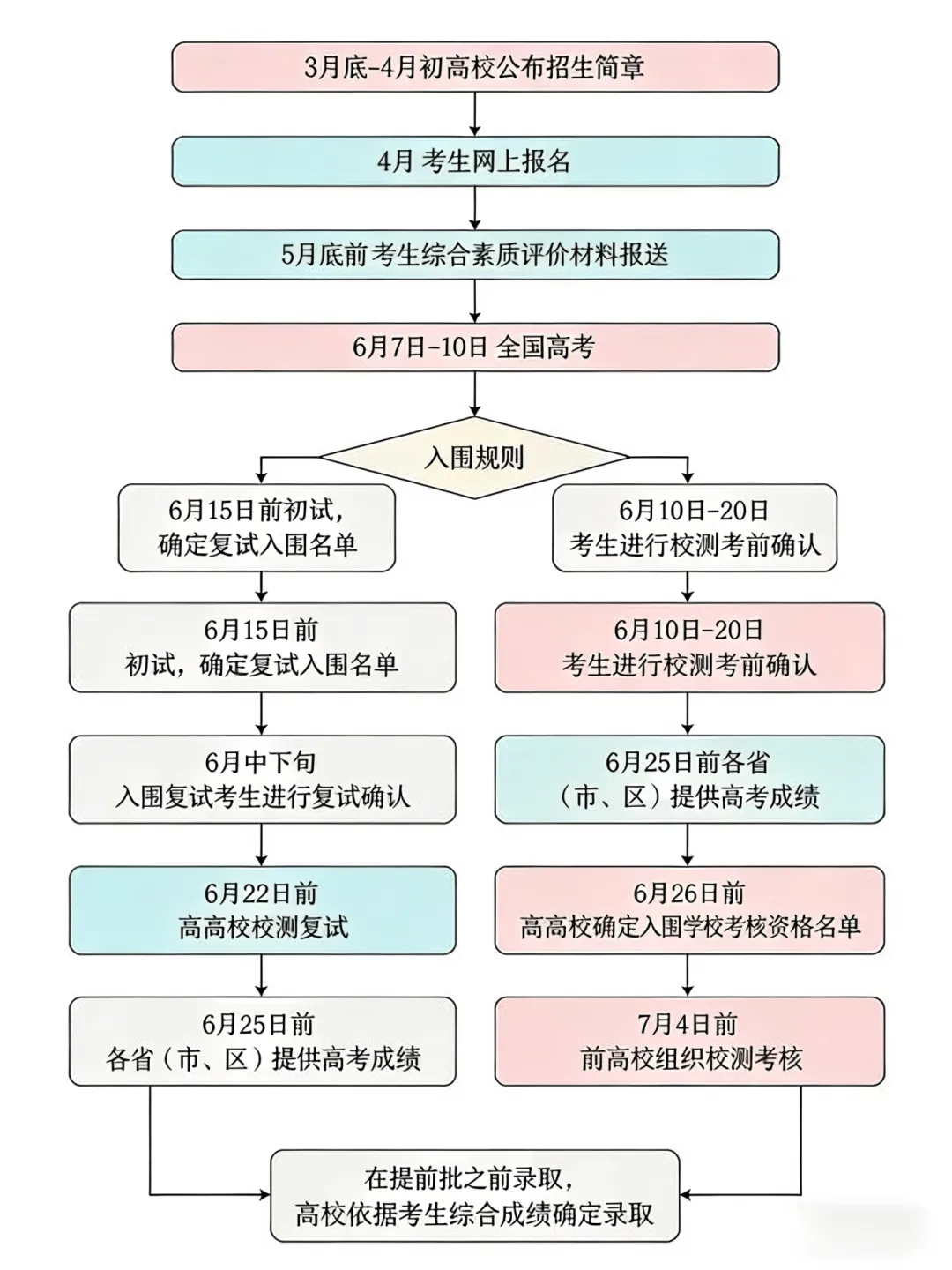 初选(9-11 月):入校宣讲 + 初步体检,筛除明显不合格者。