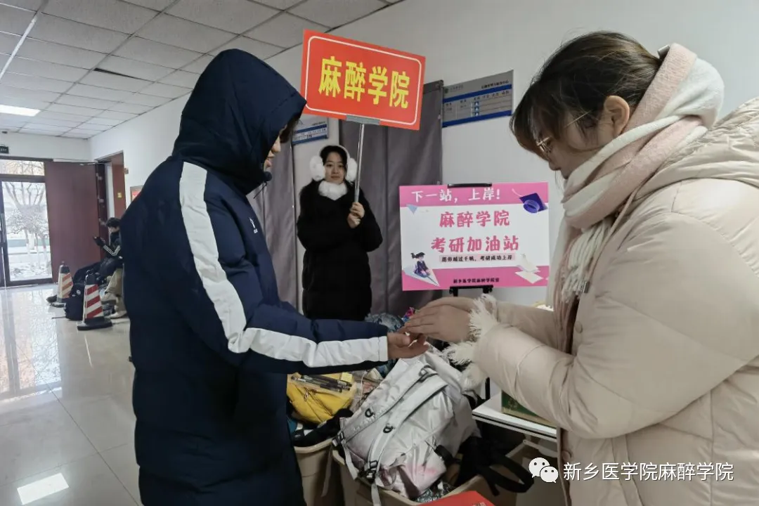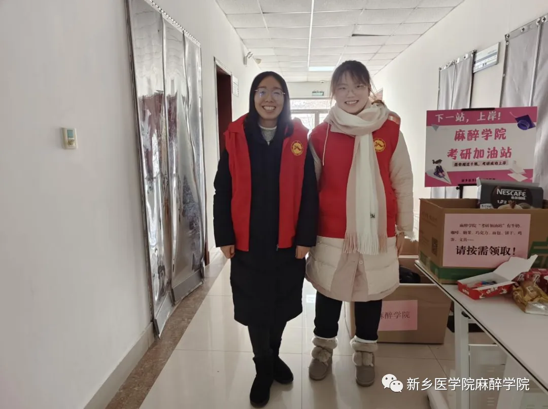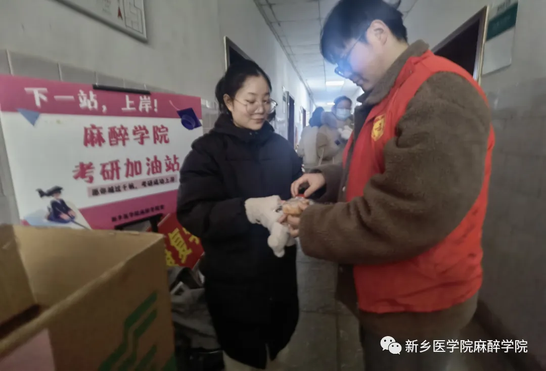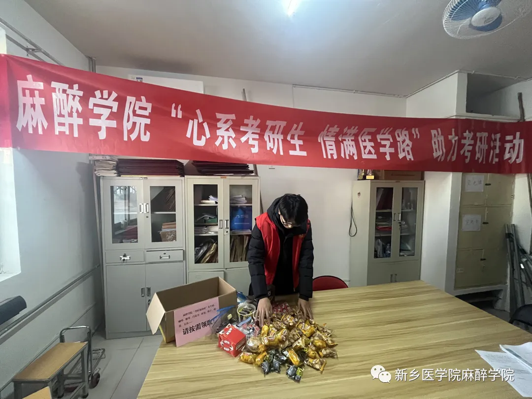 在全国研究生招生考试来临之际,麻醉学院本着全心全意为考研学子服务的初心,为考研学子提供贴心助力。12月23日到24日,研究生考试期间,我院开展了“心系考研生,情满医学路”助力考研志愿服务活动,为考研同学提供食物和文具等物资,确保他们在考试期间生活无忧,全力以赴应对考研大战。