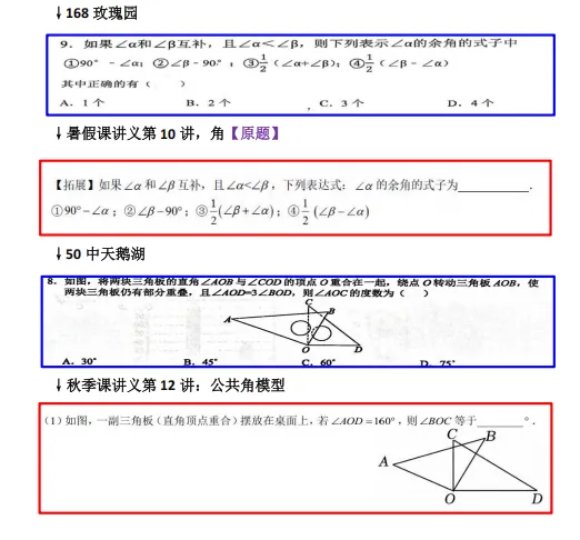 从初步对照结果来看,我们的讲义在知识点的覆盖上与合肥各校期末考试内容具有较高的一致性,尤其在角度计算,等核心章节上,讲义中的例题、习题与期末考试真题在命题思路和考查重点上吻合度显著。